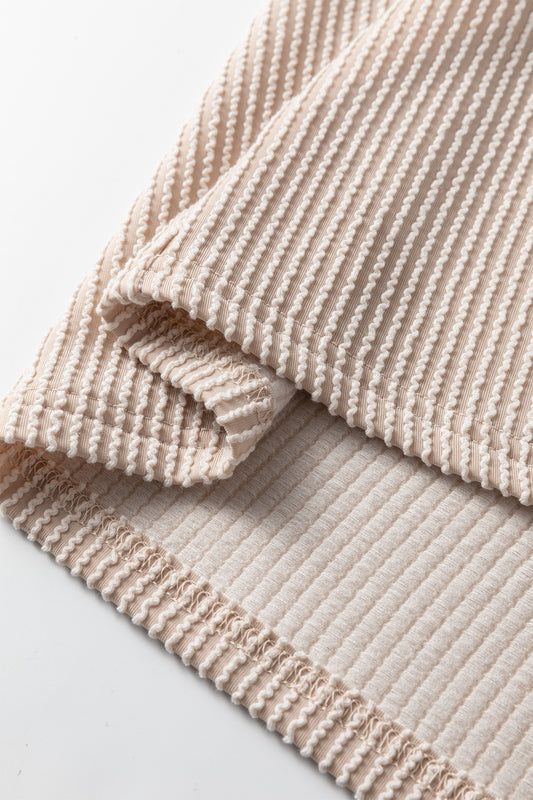 Parchment Twist Ribbed Floral Contrast Patchwork Long Sleeve Top