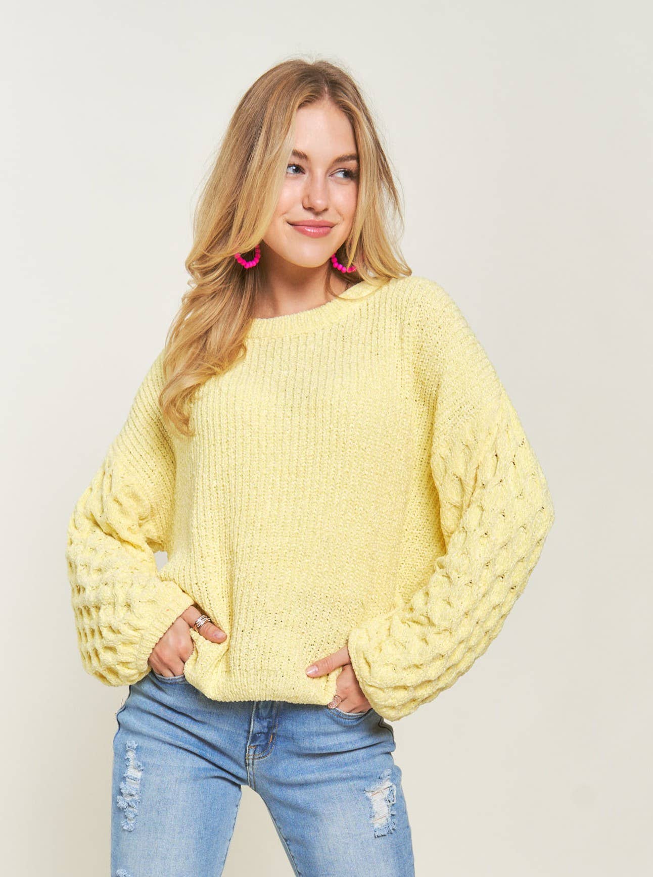 Adora- PUFF SLEEVE SWEATER TOP in yellow