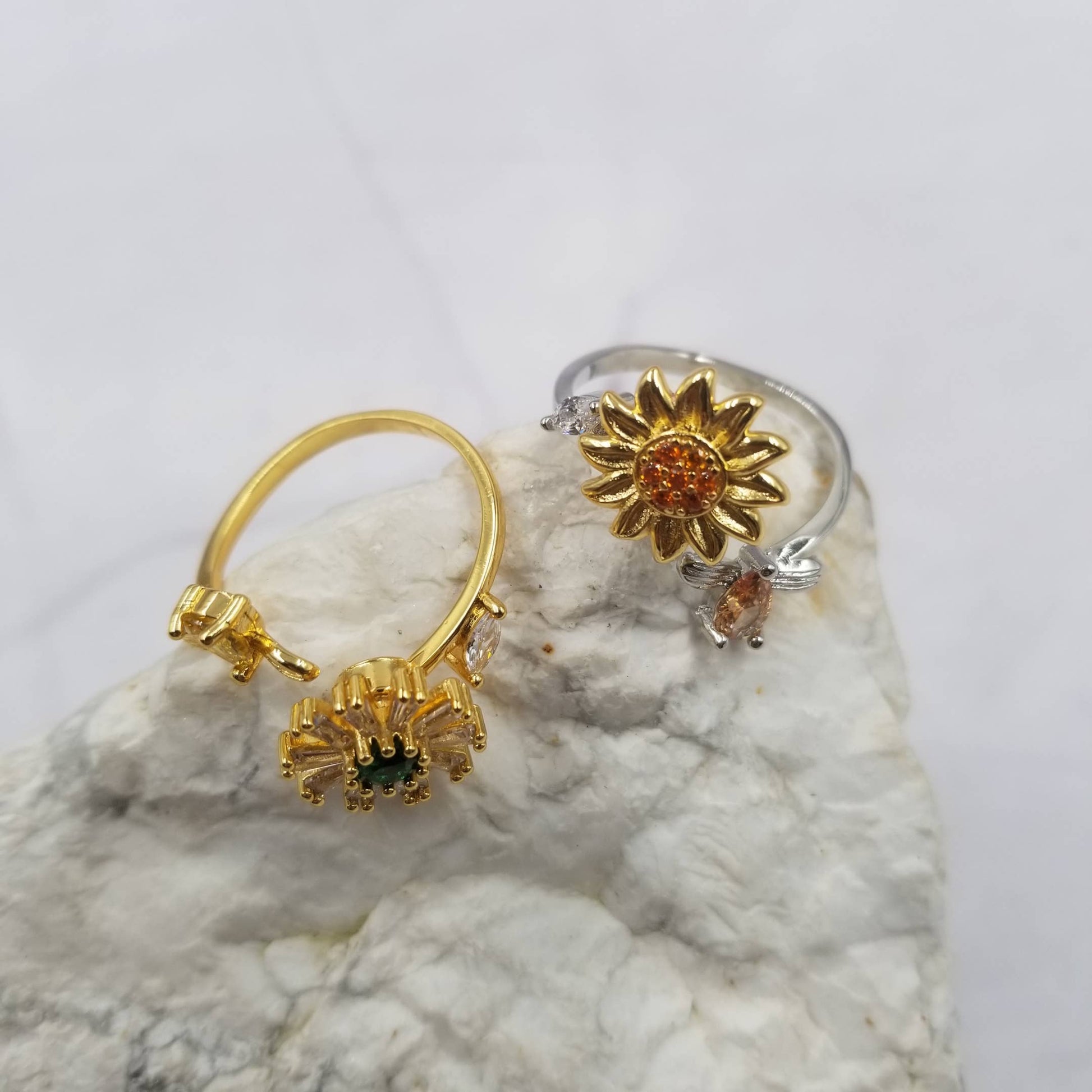 Crystal Sunflower Anxiety Rings - Adjustable fidget spinner