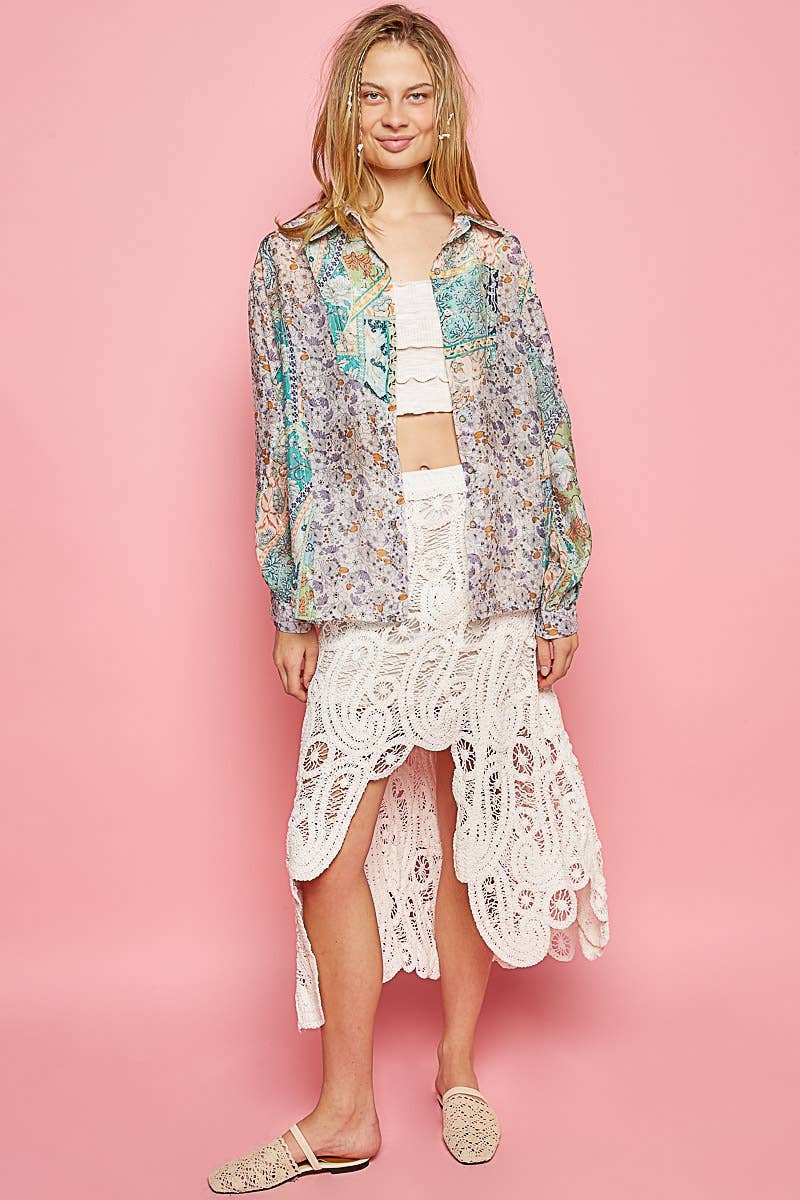Designed in long skirt in crochet with high low length, elastic band, solid color.