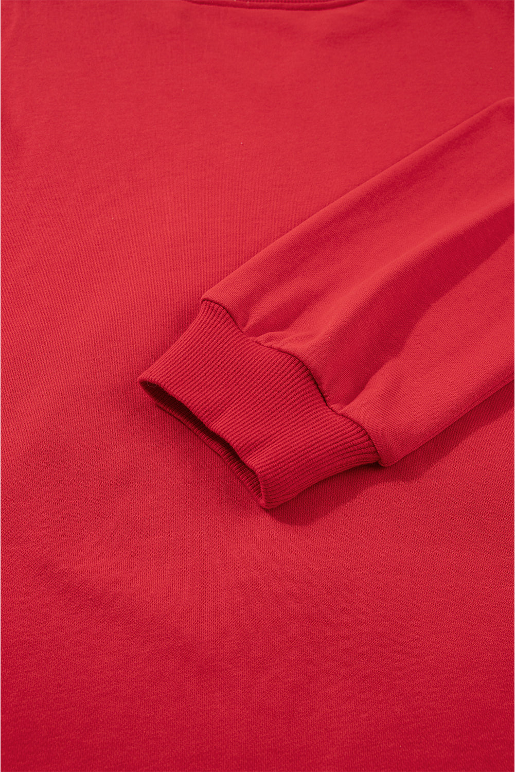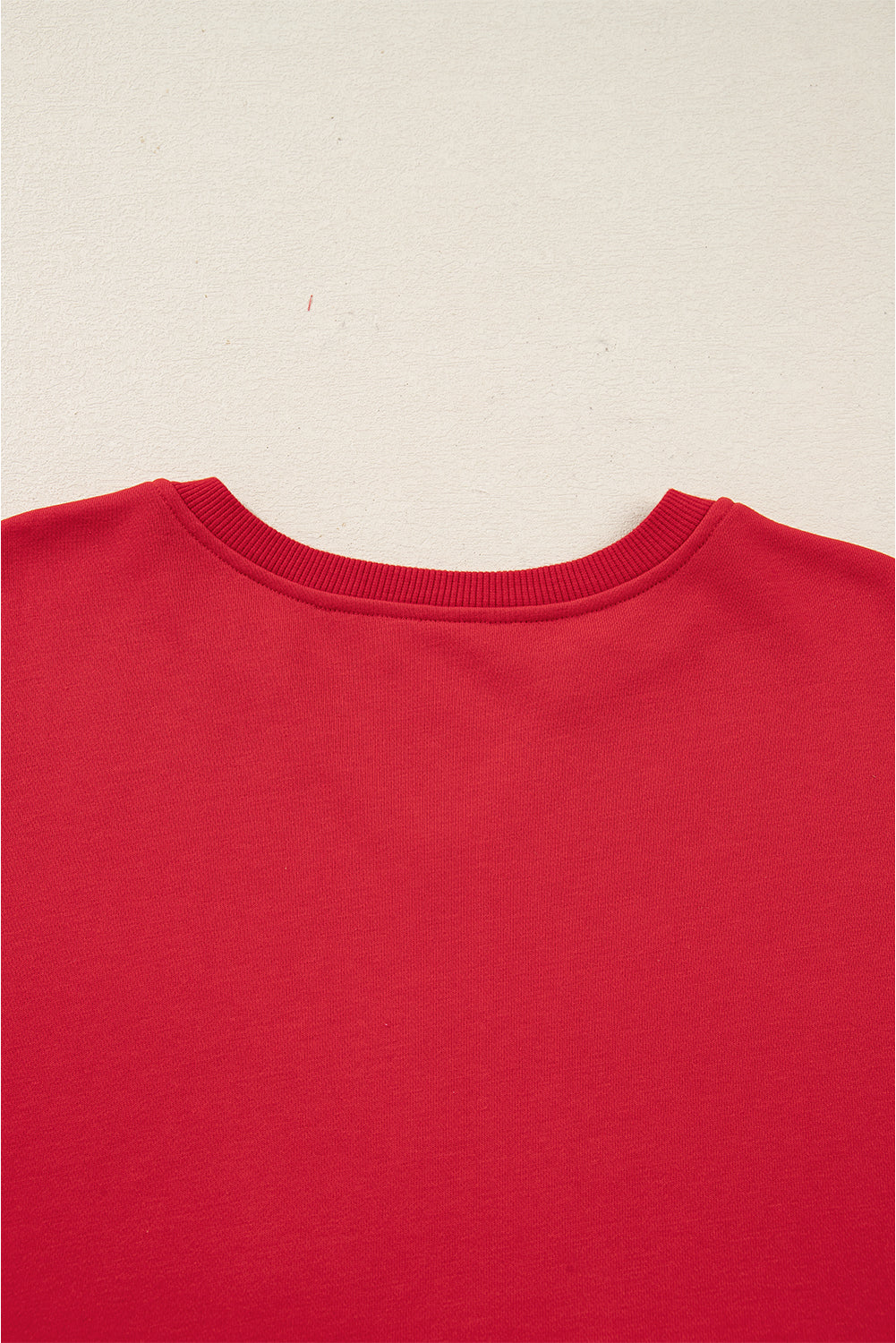 Fiery Red Plaid Frayed Double Christmas Tree Patched Drop Shoulder Sweatshirt