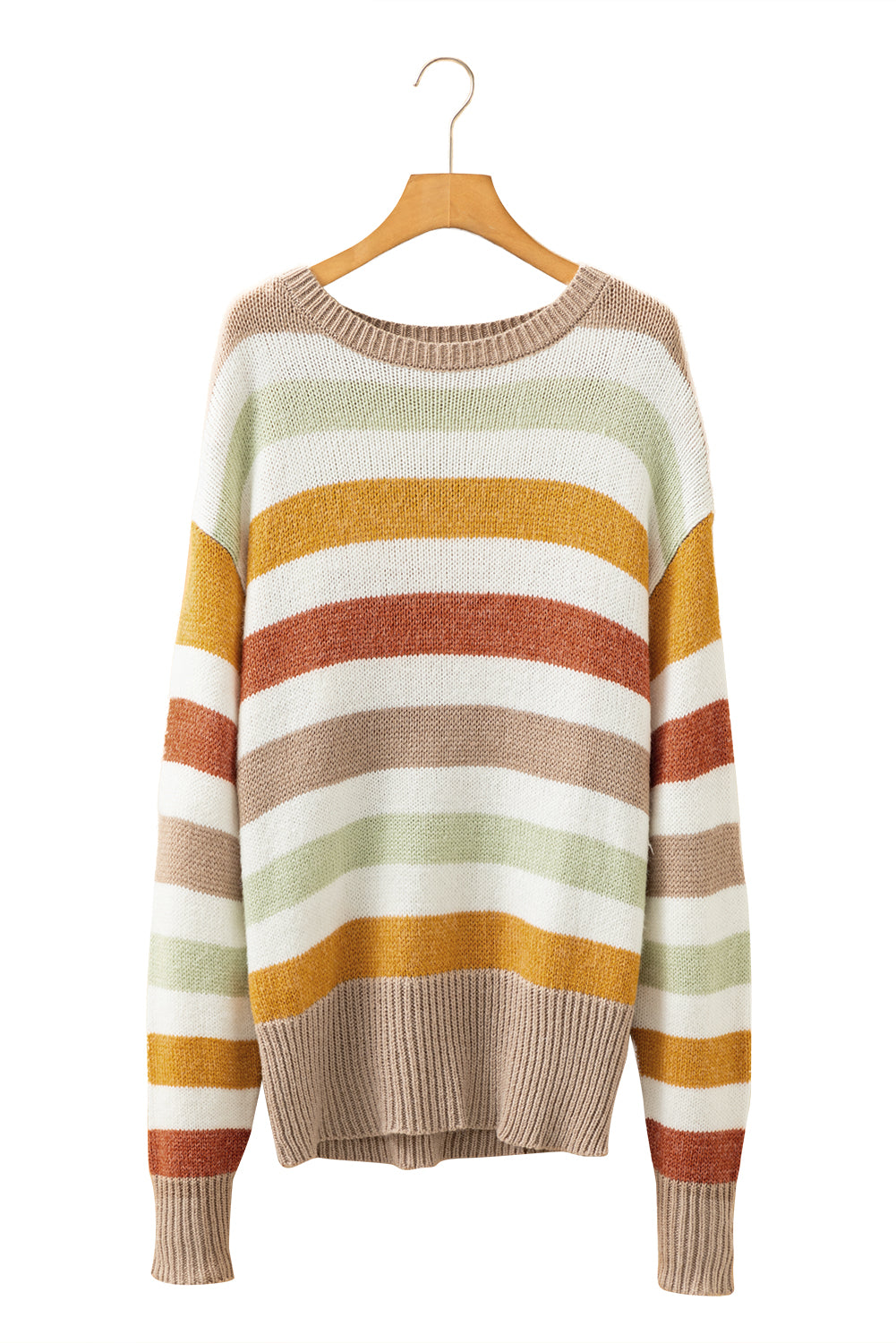- Elevate your casual wardrobe with this sweater, blending a mix of stripes and color blocks for a dynamic look.