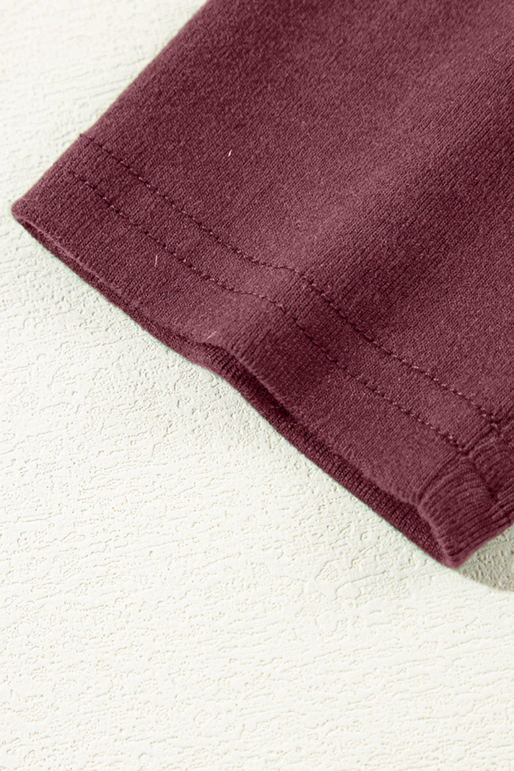 Red Dahlia Solid Exposed Seam Crew Neck Long Sleeve Top
