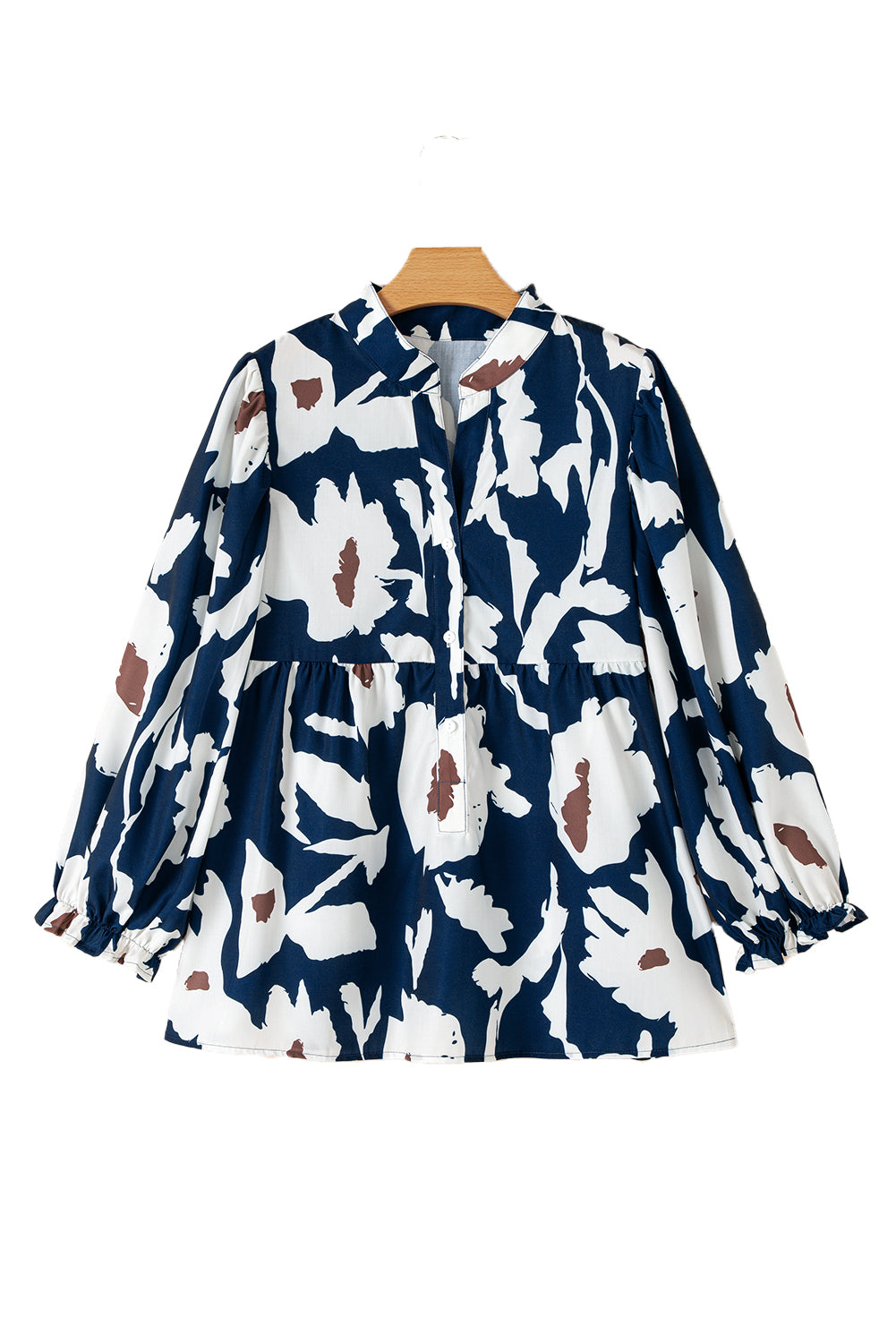 - Embrace bohemian vibes with the Sail Blue 60s Flower Frill Neck Loose Blouse, featuring a charming floral print and delicate frill details.
