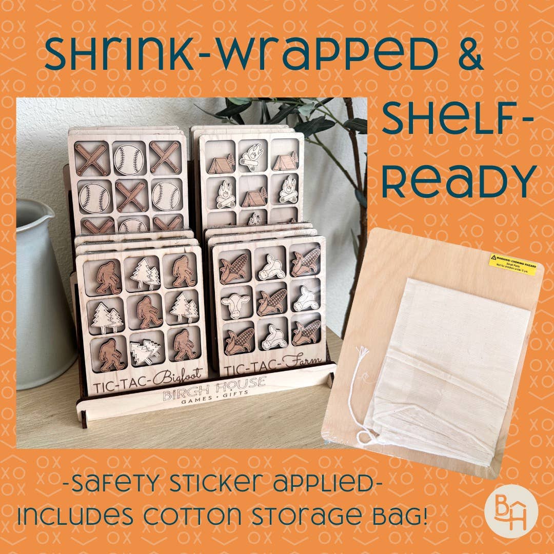 Transform family game nights with our South Dakota-themed wooden Tic Tac Toe board. Meticulously crafted for fun and durability, this board game captures the spirit of South Dakota's charm! Every board is handcrafted with 2 layers of stunning maple wood and finished with a silky-smooth clear coat for a durable, high-quality finish that will last for generations to come. Playing pieces are clear-coated and 1/4" thick in beautiful cherry and maple woods. Board measures 7” x 5.75” and is 1/2” thick. Every board includes 5 of each playing piece. A natural cotton storage bag is included to hold the board and pieces.