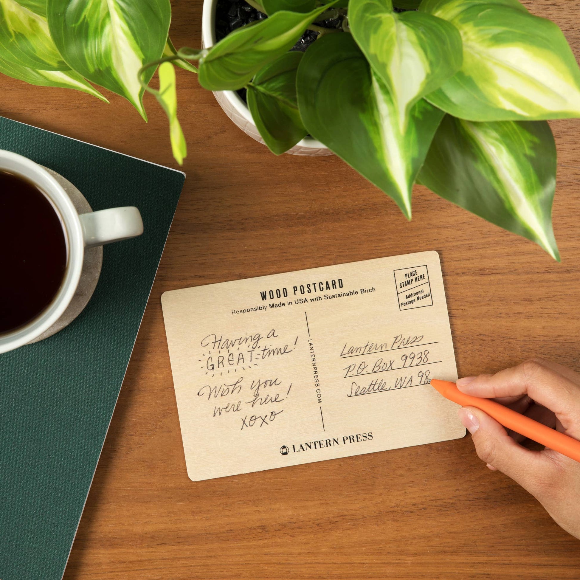 Our Wood Postcards feature sustainable birch and unique printing with wood grain revealed. We use eco-friendly inks, sourced responsibly and planet friendly. Printed in USA, supporting domestic production.